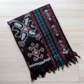 黒地に赤と白の可愛らしいエスニック模様、そしてグリーンのストライプがとっても効果的なデザインです。機械生産ではなく、昔ながらの機織を使って織り上げたものですので、図柄は1枚1枚若干異なっています。手作りの温かみがあり、お部屋にエスニックの香りを添えるアイテムとして人気があります。