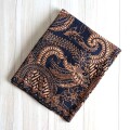インドネシア産の手描きバティックです。セカルジャガッドとは、「世界地図」意味する言葉で、様々なモチーフをパッチワークのように散りばめたデザインです。植物の縁取りの中に、幾何学模様のような小花やストライプや細かいドットが配され、ところどころに愛嬌のある鳥が描かれています。