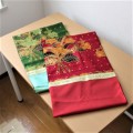 表地の両端の無地の部分はシルク、中央のブーケの絵が描かれた部分はコットンです。