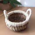ころんとしたフォルムがキュートなシーグラス(海草)のバスケットです。縁取りの白い部分は毛糸ではなく、ジュートという麻の一種でできています。ジュート麻は成長が速く、耐久性に優れた繊維になります。