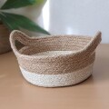 ジュートでできたバスケット。毛糸で編んだような見た目が特徴的です。ジュートとは麻の一種で、成長が速く、耐久性に優れた繊維になります。