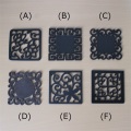 モダンな木彫りコースター。図柄は6種類です。色はこげ茶色ですが、天然素材を使用しているので、黒に近いものや茶色に近いものもあります。