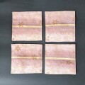 ピンクベージュのグラデーション生地に、ゴールドのラインと花模様があしらわれた和柄のコースター。当店オリジナルのハンドメイド商品です。4枚で1セットの販売となります。両面とも同じデザインです。