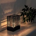 青みがかったバリガラスと、黒い木のパーツを重ねた、スタイリッシュなキャンドルホルダー。キャンドルを灯すと、いっそうクールなイメージです。性別を問わず、お使いいただけます。プレゼントにもどうぞ。
