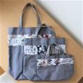帆布生地にバティックをあしらって作りました。帆布としては薄地の11号生地ですので、あまりかさばらずに畳めます。